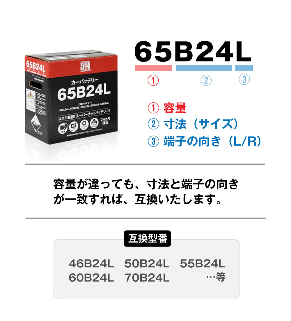 スーパーナット 65B24R(充電制御車対応) 自動車用バッテリー