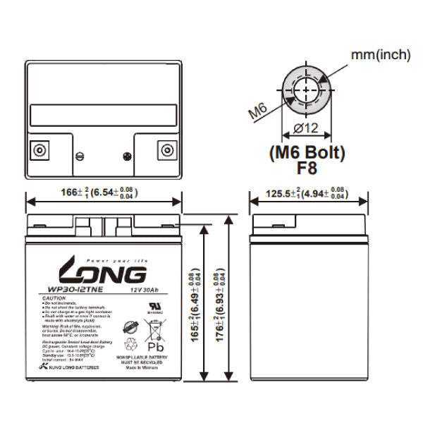 LONG WP30-12TNE サイクルバッテリー