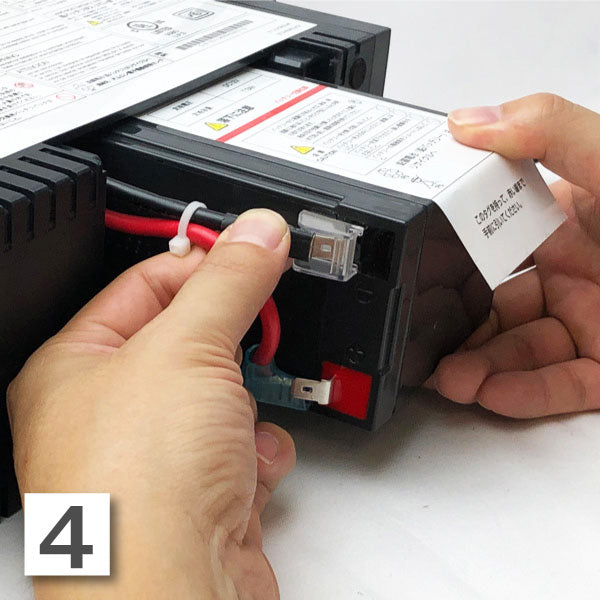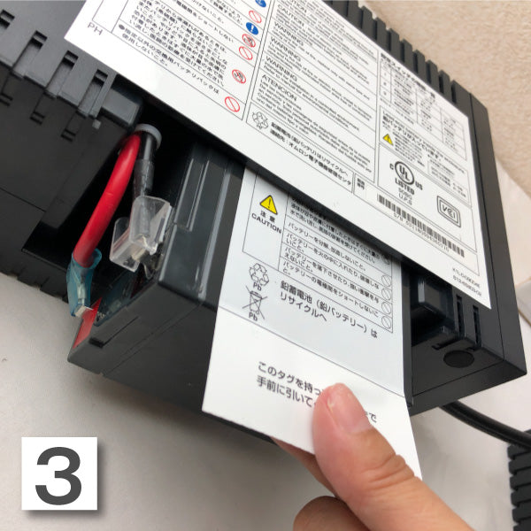 ラベルを持ってバッテリーを半分ほど手前に引き出します。