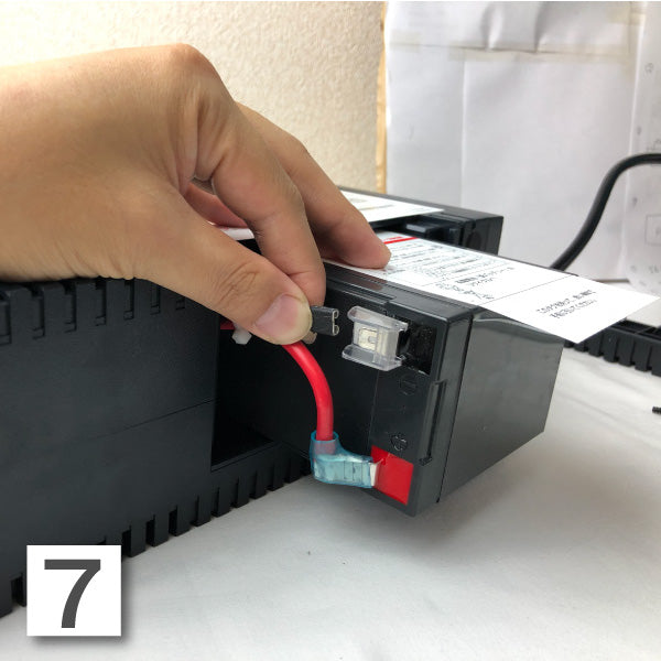 プラス(赤)→マイナス(黒)の順で、端子にコネクタを差し込みます。